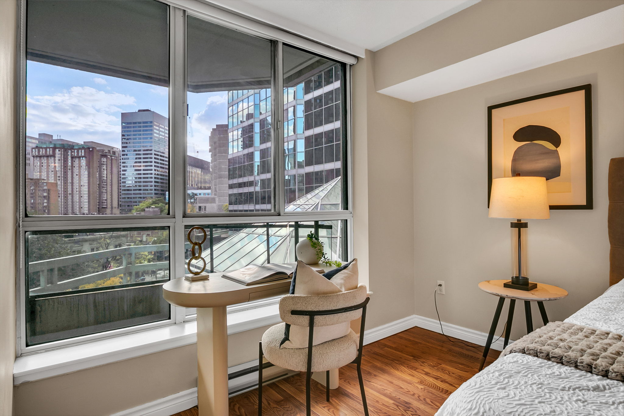 Nestled in Toronto's Bay Street Corridor, this spacious one-bedroom residence at Minto Plaza offers approximately 756 sq ft of living space with a coveted south-west exposure and open balcony, flooding the suite with afternoon sunlight and downtown skyline views. Generous living and dining areas provide the flexibility to entertain or work from home, while ample storage and a practical layout mean you can make the space truly your own. Parking and a locker come with the unit for added convenience.